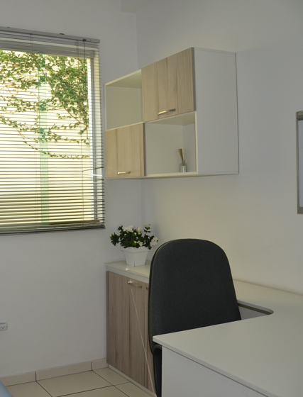 Consultório 1 primeiro piso – possui 9 m2, com 1 janela, persiana horizontal...